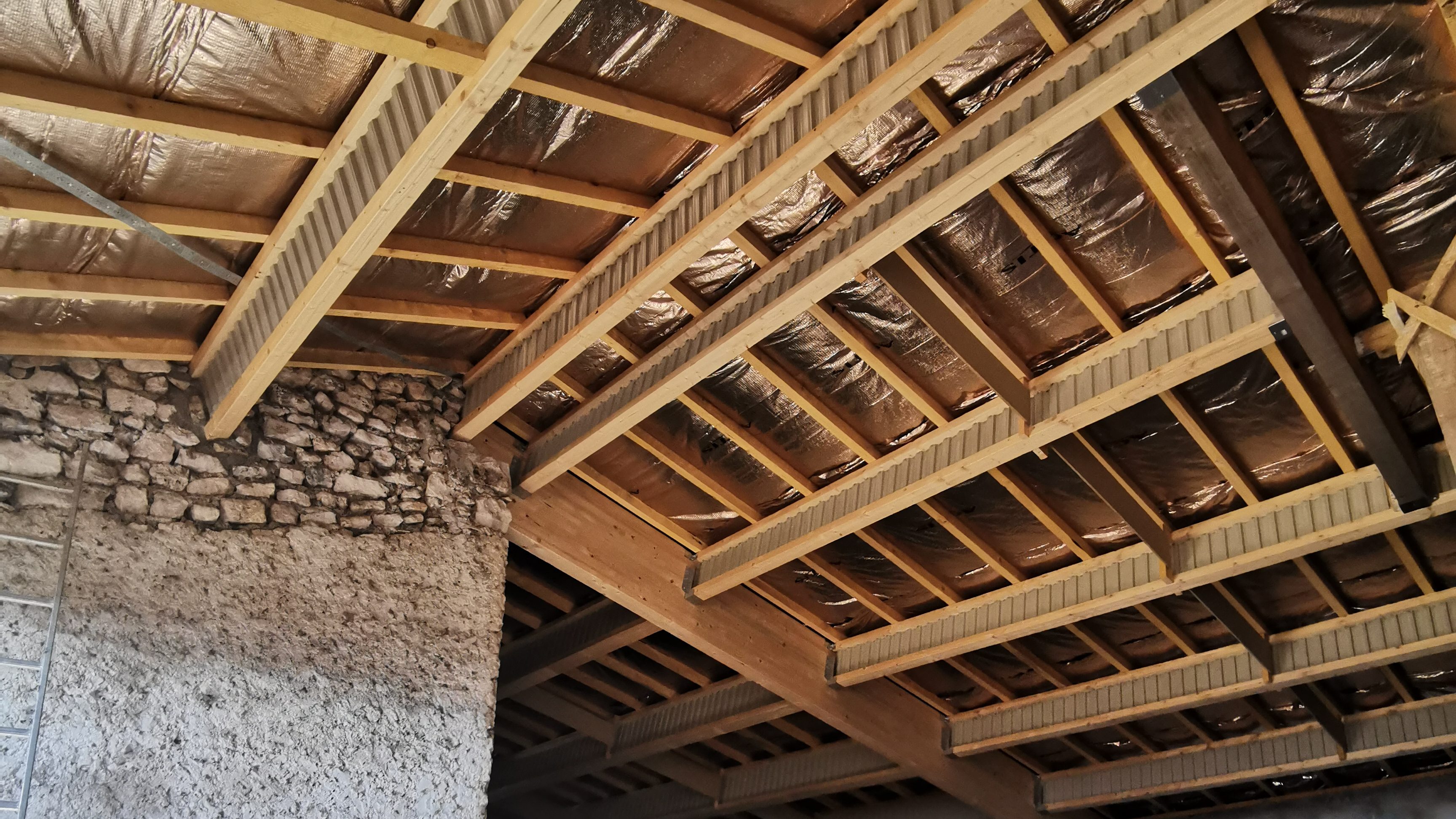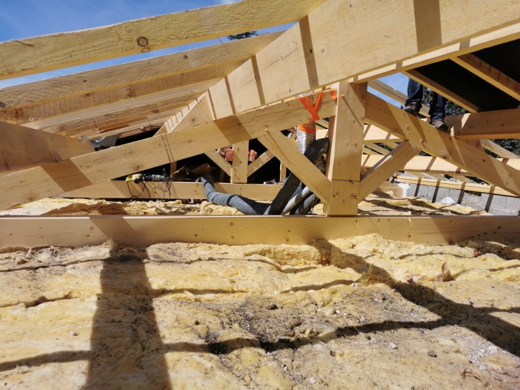 Ce projet a demandé une vraie réflexion technique dès la mise en œuvre. Après avoir posé la charpente sur un arbalétrier , nous avons intégré un isolant très performant en rampants de toiture, puis refait l’ensemble de la toiture.