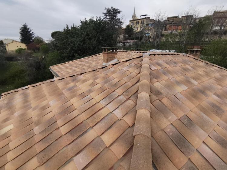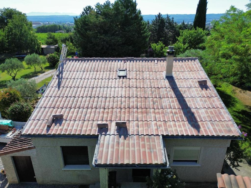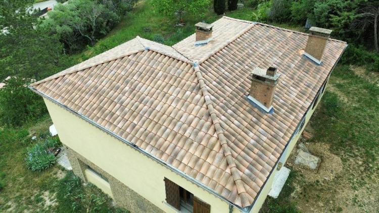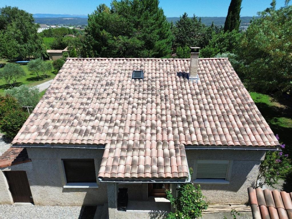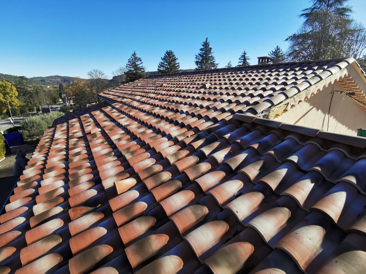 Sur cette maison des années 70, il était essentiel de refaire la toiture pour assurer la pérennité du logement. Nous l’avons réalisée en tuiles Romane, avec un écran sous-toiture pour protéger le logement en cas de casse d’une tuile.