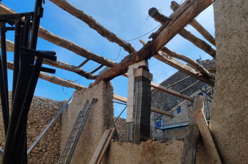 Un chantier particulièrement agréable à réaliser sur cette maison pleine d’histoire : un ancien presbytère datant du XIVᵉ siècle. Afin d’améliorer le confort thermique, nous avons renforcé l’isolation dans les combles avant de procéder à la réfection complète de la toiture.