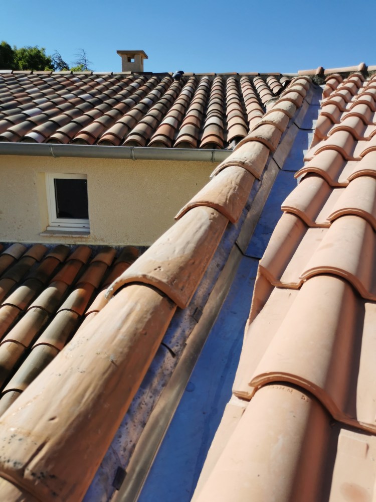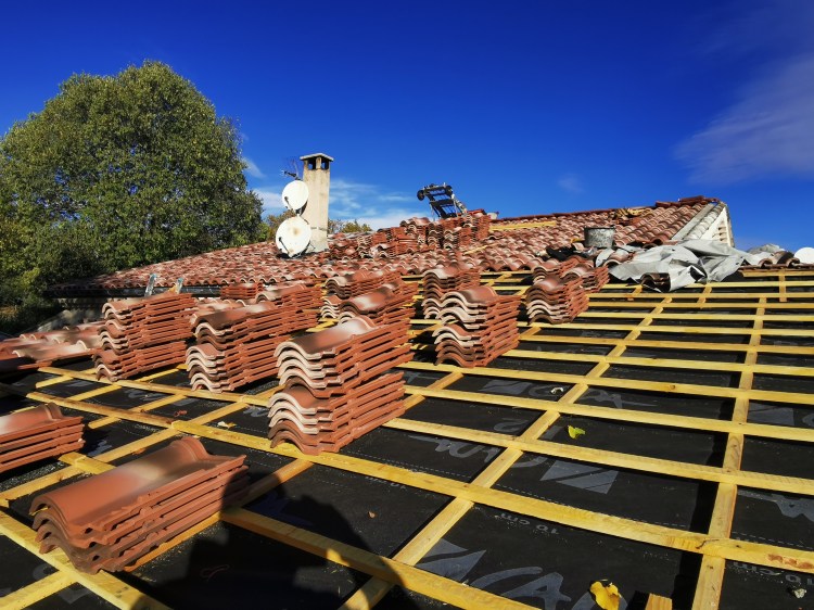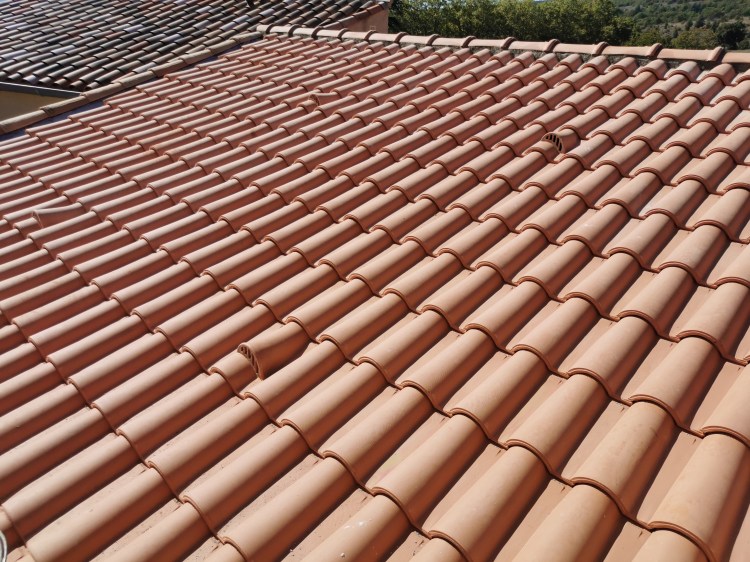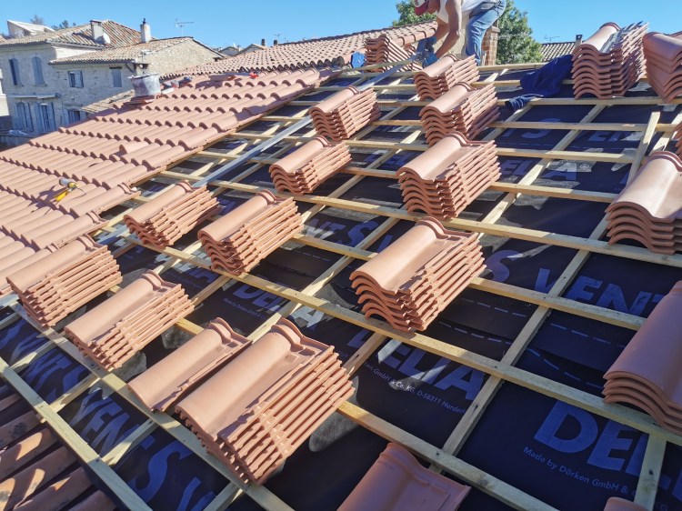Greoux les Bains : 210m² (Dépose de toiture existante, fourniture et pose d’écran sous-toiture, de liteaux et de tuiles romane).